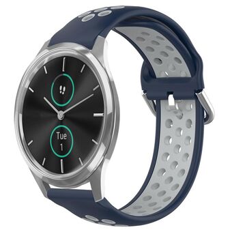 For Garmin VivoMove Luxe 20mm Perforated Breathable Sports Silicone Watch Band(Midnight Blue + Gray)