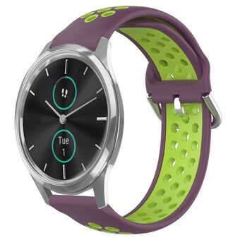 For Garmin VivoMove Luxe 20mm Perforated Breathable Sports Silicone Watch Band(Purple+Lime)