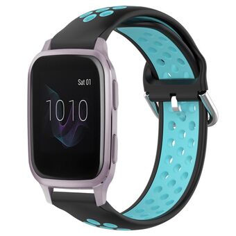 For Garmin Venu SQ 20mm Perforated Breathable Sports Silicone Watch Band(Black+Blue)