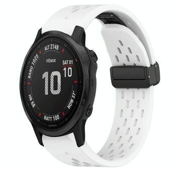 For Garmin Fenix 6S Hole Folding Buckle 20mm Silicone Watch Band(White)