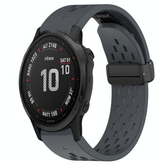 For Garmin Fenix 6S Hole Folding Buckle 20mm Silicone Watch Band(Dark Gray)