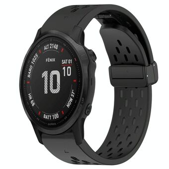 For Garmin Fenix 6S Hole Folding Buckle 20mm Silicone Watch Band(Black)