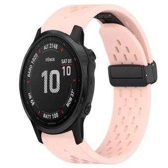 For Garmin Fenix 6S Hole Folding Buckle 20mm Silicone Watch Band(Pink)