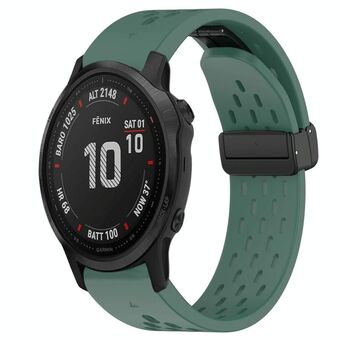 For Garmin Fenix 6S Hole Folding Buckle 20mm Silicone Watch Band(Dark Green)