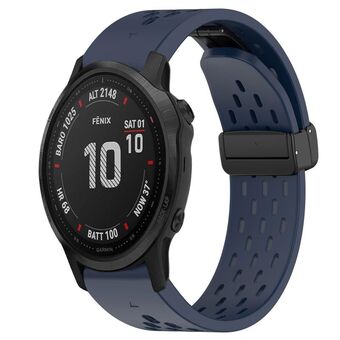 For Garmin Fenix 6S Hole Folding Buckle 20mm Silicone Watch Band(Midnight Blue)