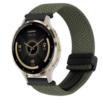 For Garmin Venu 3S 18mm Magnetic Buckle Braided Watch Band(Olive Green)
