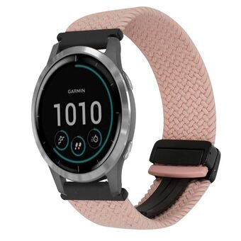 For Garmin Vivoactive 4 22mm Magnetic Buckle Braided Watch Band(Pink)