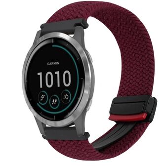 For Garmin Vivoactive 4 22mm Magnetic Buckle Braided Watch Band(Wine Red)