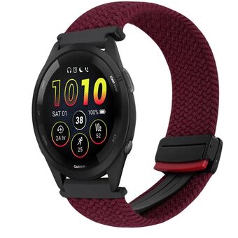 For Garmin Forerunner 265 22mm Magnetic Buckle Braided Watch Band(Wine Red)