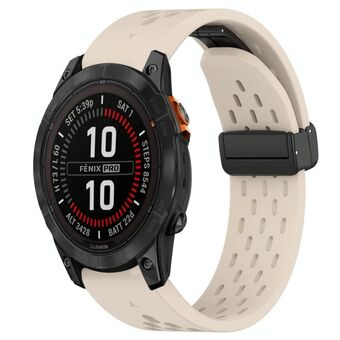 For Garmin Fenix 7 Pro 47mm Hole Folding Buckle 22mm Silicone Watch Band(Starlight Color)
