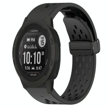 For Garmin Instinct 2 Solar Hole Folding Buckle 22mm Silicone Watch Band(Black)