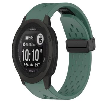 For Garmin Instinct 2 Solar Hole Folding Buckle 22mm Silicone Watch Band(Dark Green)