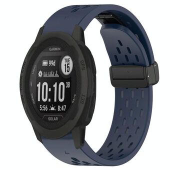 For Garmin Instinct 2 Solar Hole Folding Buckle 22mm Silicone Watch Band(Midnight Blue)