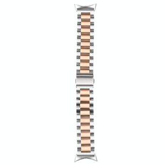 For Google Pixel Watch Three Strains Stainless Steel Metal Watch Band (Silver+Rose Gold)