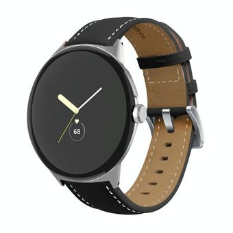 For Google Pixel Watch Pointed Tail Stitching Genuine Leather Watch Band(Black)