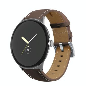 For Google Pixel Watch Pointed Tail Stitching Genuine Leather Watch Band(Coffee)