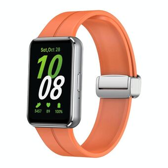 For Samsung Galaxy Fit 3 Magnetic Fold Silver Buckle Silicone Watch Band(Orange)