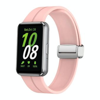 For Samsung Galaxy Fit 3 Magnetic Fold Silver Buckle Silicone Watch Band(Light Pink)