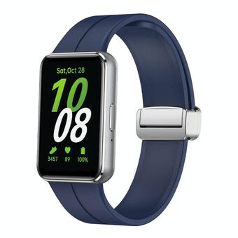 For Samsung Galaxy Fit 3 Magnetic Fold Silver Buckle Silicone Watch Band(Blue)