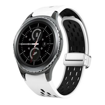 For Samsung Gear S2 Classic Two Color Magnetic Folding Silver Buckle Silicone Watch Band(White Black)