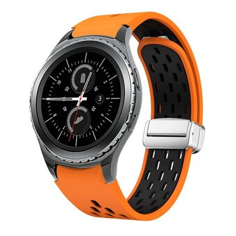 For Samsung Gear S2 Classic Two Color Magnetic Folding Silver Buckle Silicone Watch Band(Orange Black)