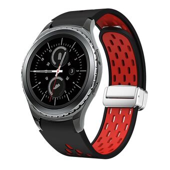 For Samsung Gear S2 Classic Two Color Magnetic Folding Silver Buckle Silicone Watch Band(Black Red)