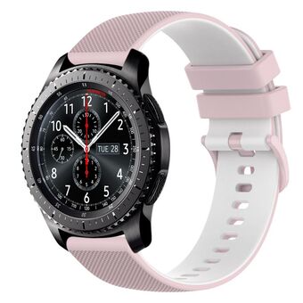 For Samsung Gear S3 Frontier 22mm Checkered Two-Color Silicone Watch Band(Pink+White)
