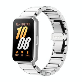 For Samsung Galaxy Fit 3 Butterfly Buckle Ceramic White Metal Watch Band(Silver)