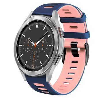 For Samsung Galaxy Watch 4 Classic 46mm 20mm Two-Color Silicone Watch Band(Midnight Blue+Pink)