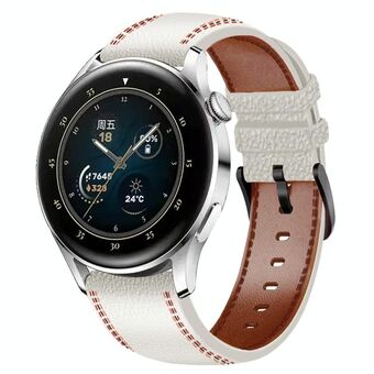 For Samsung Galaxy Watch 3 45mm Sewing Thread Genuine Leather Watch Band(White)