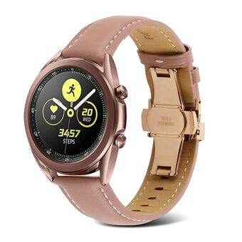 For Samsung Galaxy Watch4 20mm Butterfly Buckle Stitching Genuine Leather Watch Band(Light Pink)