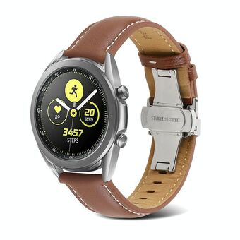 For Samsung Galaxy Watch4 20mm Butterfly Buckle Stitching Genuine Leather Watch Band(Coffee)