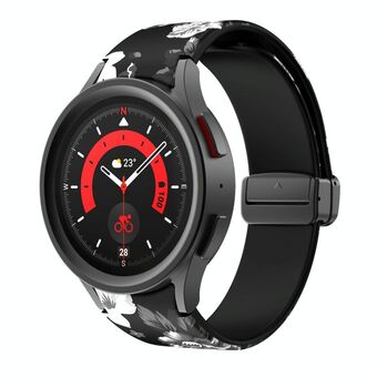 For Samsung Galaxy Watch5 Magnetic Printed Silicone Watch Band(Black and Grey Flower)