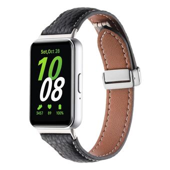 For Samsung Galaxy Fit 3 Litchi Texture Magnetic Buckle Slim Leather Watch Band(Brown)