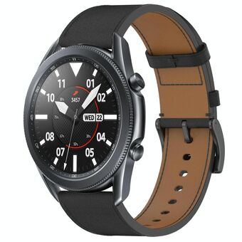 For Samsung Galaxy Watch3 45mm Press Button 22mm Leather Watch Band(Black)