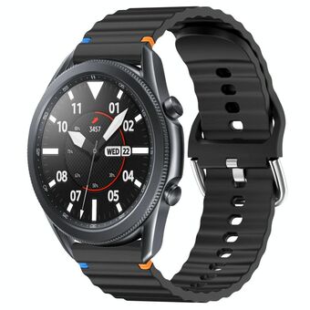 For Samsung Galaxy Watch 3 45mm Wavy Grain Stitched 22mm Silicone Watch Band(Black)