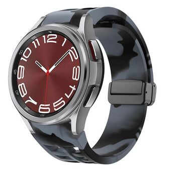 Για το Samsung Galaxy Watch 6 40 / 44mm Richard Μαγνητική πτυσσόμενη μαύρη ζώνη σιλικόνης με πόρπη (μαύρο γκρι καμουφλάζ)