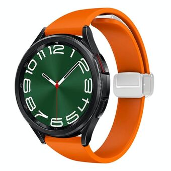 For Samsung Galaxy Watch 6 / 6 Classic Magnetic Silver Buckle Slim Silicone Watch Band(Orange)