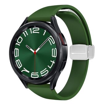 For Samsung Galaxy Watch 6 / 6 Classic Magnetic Silver Buckle Slim Silicone Watch Band(Army Green)