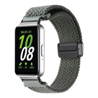 Για Samsung Galaxy Fit3 Μαγνητική πόρπη νάιλον πλεξούδα ρολόι μπάντα (σκούρο πράσινο)
