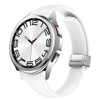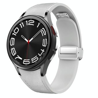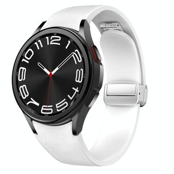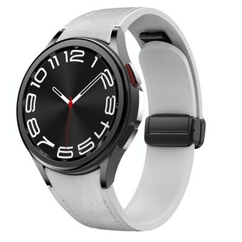 Για Samsung Galaxy Watch 6 Slim Μαγνητική μαύρη πόρπη δερμάτινη ζώνη σιλικόνης (λευκό)
