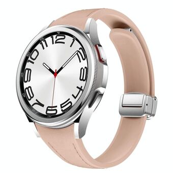 Για Samsung Galaxy Watch 6 Μαγνητική ασημένια πόρπη Δερμάτινη ζώνη ρολογιού σιλικόνης (ροζ)