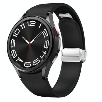 Για Samsung Galaxy Watch 6 Μαγνητική μαύρη πόρπη δερμάτινη ζώνη ρολογιού σιλικόνης (Μαύρο)