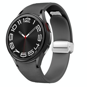 Για Samsung Galaxy Watch 6 Μαγνητική μαύρη πόρπη δερμάτινη ζώνη σιλικόνης (Space Grey)