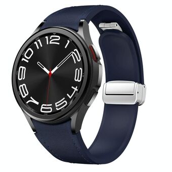 Για Samsung Galaxy Watch 6 Μαγνητική ασημένια πόρπη δερμάτινη ζώνη ρολογιού σιλικόνης(Midnight Blue)