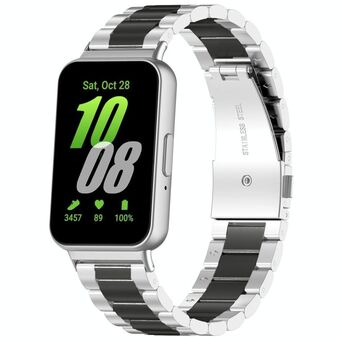For Samsung Galaxy Fit 3 SM-R390 Three Bead Stainless Steel Metal Watch Band(Silver+Black)