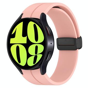 Για το Samsung Galaxy Watch 6 / 6 Classic Μαγνητική πτυσσόμενη μαύρη πόρπη σιλικόνης ρολόι μπάντα ρολογιού (ανοιχτό ροζ)