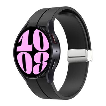 Για Samsung Galaxy Watch 6 / 6 Classic μαγνητική πτυσσόμενη ασημένια πόρπη σιλικόνης ζώνη ρολογιού (μαύρο)