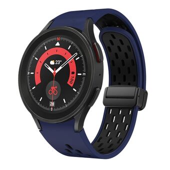 For Samsung Galaxy Watch 5 Pro 45mm Two Color Magnetic Folding Black Buckle Silicone Watch Band(Midnight Blue White)