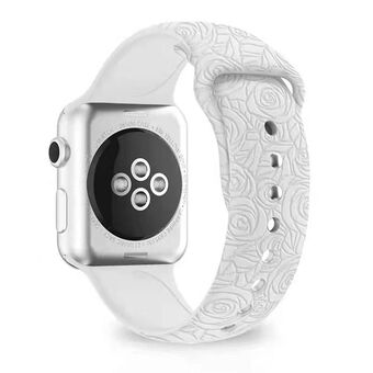 Rose Embossing Silicone Watch Band For Apple Watch Series 9&8&7 41mm / SE 3&SE 2&6&SE&5&4 40mm / 3&2&1 38mm(White)